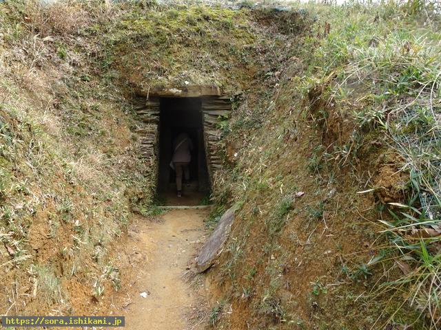 頭上に石梁二本と、奥に石棚の両方を使用した横穴式石室は岩橋千塚古墳だけだそうです。