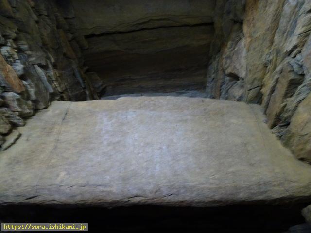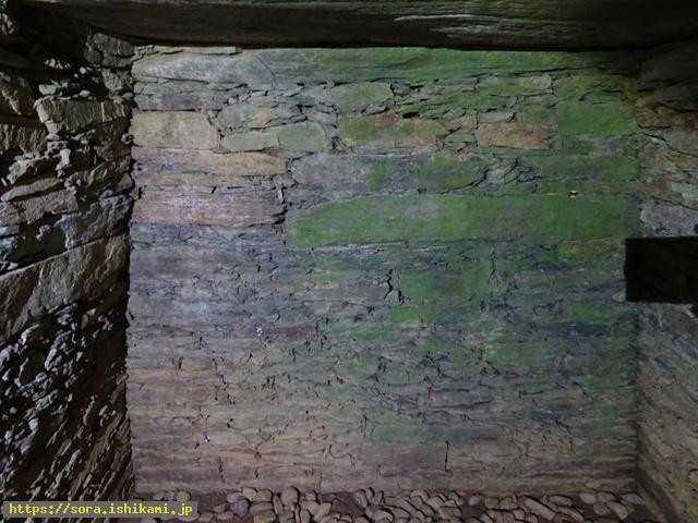 石室の奥の独特に鉄平石のような平らな石を積み重ねたのは、初めて見ます。