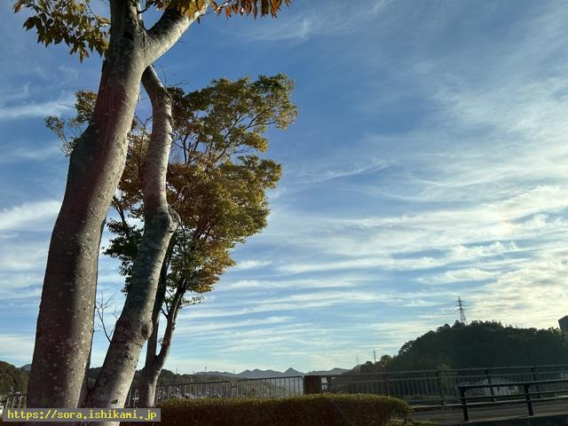 車内より撮影、わかりにくいですが右側に彩雲